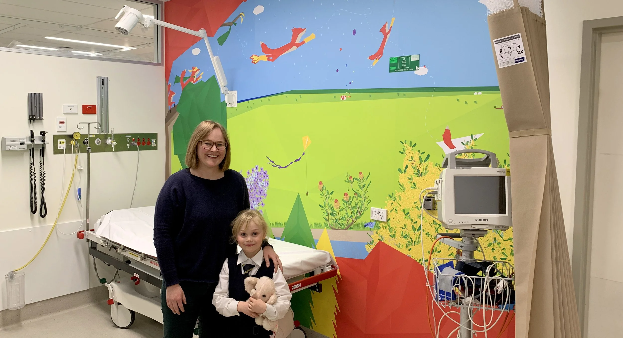 For example, when administering a needle or suturing a wound, staff can use the artwork as a distraction encouraging the child to count the number of birds flying out of the tree or discuss the obstacles the fox must overcome.
